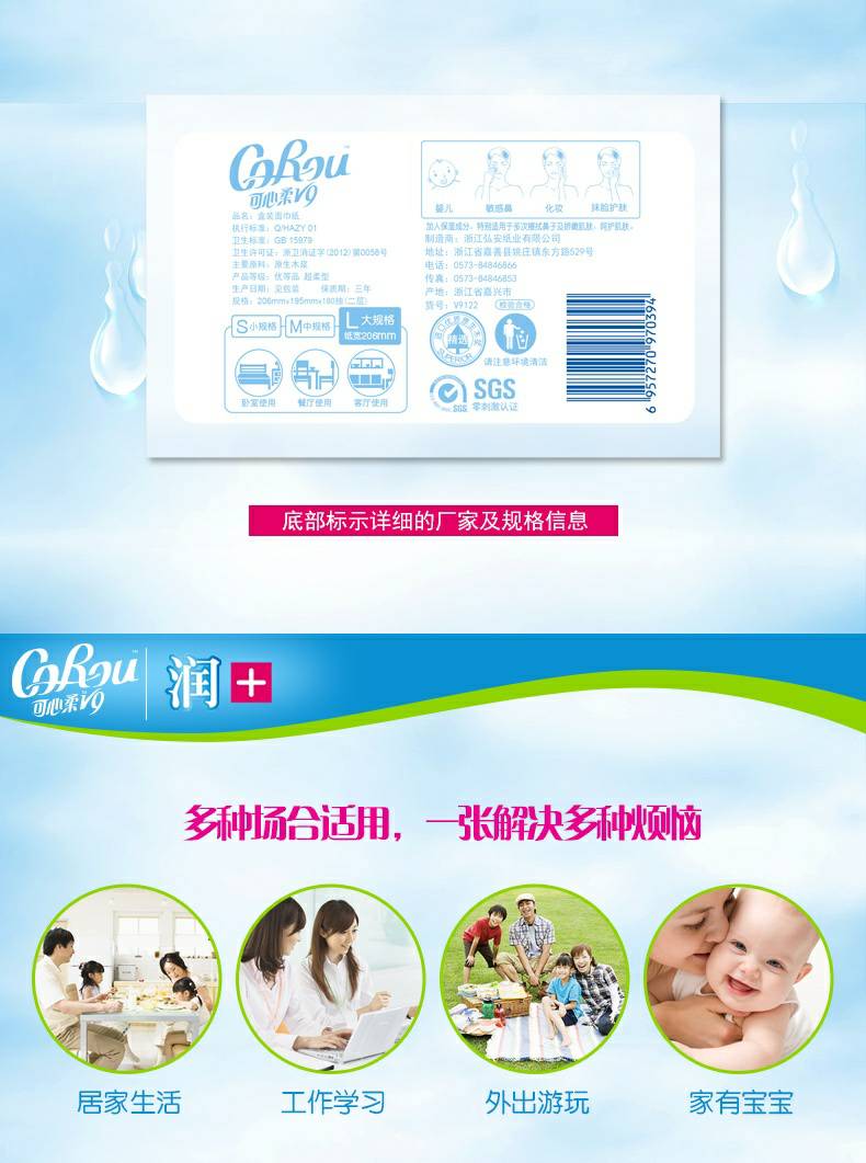 CoRou V9润+系列CoRou云柔系列白色木浆110抽