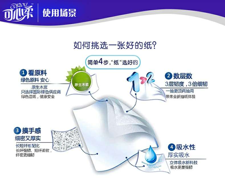 可心柔 V8系列CoRou云柔系列白色木浆40抽